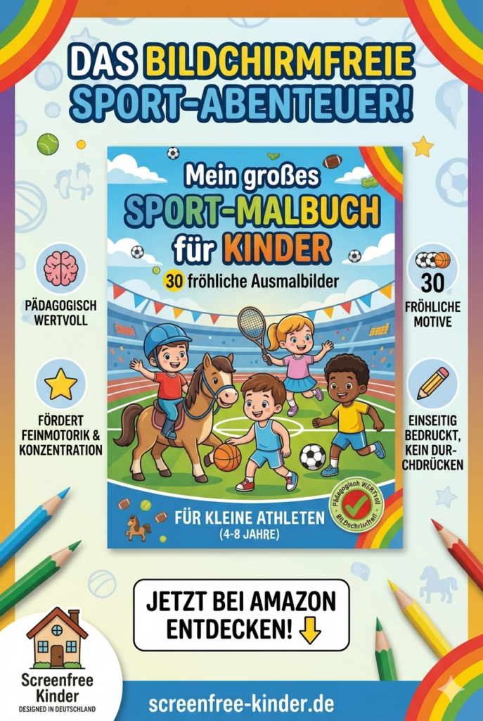 Suchen Sie nach einer sinnvollen, ruhigen Beschäftigung für kleine Energiebündel? 🏃‍♂️🎨! Mit 30 fröhlichen Motiven rund um Fußball, Reiten, Tennis und Basketball fördern wir spielerisch Feinmotorik und Konzentration – ganz ohne Bildschirm. Perfekt als Geschenk, für Regentage oder zum Runterfahren nach dem Kindergarten. Einseitig bedruckt für perfekten Malspaß ohne Durchdrücken! Jetzt entdecken. 👇